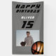 Basketball Boy Photo Bonne Bannière Anniversaire. Bannière de fête d'anniversaire de basket moderne pour tous ceux qui aiment le basket-ball. Personnalisez avec votre photo, nom et âge.