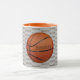 Tiled Basketball Text Abstract Design Coffee Mug avec une couleur arrière - plan personnalisable et personnalisation sur le basket-ball.