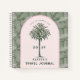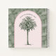 Ce Travel Journal a l'image d'un palmier dans une arche rose avec un motif de feuilles tropicales dans l'arrière - plan.