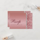 Cette élégante et luxueuse parties scintillant en or rose et carte RSVP Bat mitzvah recto diamant est parfaite pour votre célébration. C'est chic et les polices modernes sont nettes et nettes et rendent cette carte RSVP unique et unique. Il indique RSVP et a la date limite RSVP sur le devant et a l'acceptation ou le regret sur le dos. Il fait partie d'une suite de produits qui rendent simple et facile la célébration du grand jour de votre fille.