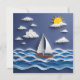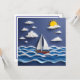 Carte postale mignonne pour rester en contact avec un voilier et le soleil illustré dans un effet de recouvrement de papier.