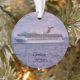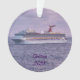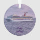Pendant que l'aube arrive, la lumière de matin semble mouler une légère teinte violacée au-dessus de la mer, de ciel, et d'un bateau de croisière qui est dirigé pour un port d'escale dans les Caraïbe. Date d'un côté (soyez sûr d'écrire l'année en cours) et bonnes fêtes (peut être changé, si désiré) de l'autre.