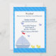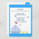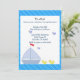 Un joli voilier bleu doux avec des petits canards jaunes dans l'eau et des oiseaux bleus dans le ciel. Bordure rayée en diagonale bleue. Customisez avec toutes les informations de votre baby shower selon vos besoins.