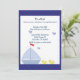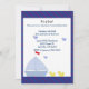 Un joli voilier bleu doux avec des petits canards jaunes dans l'eau et des oiseaux bleus dans le ciel. Bordure rayée en diagonale bleue et rouge. Customisez avec toutes les informations de votre baby shower selon vos besoins.