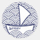 Un autocollant rond classique avec un bateau sur un motif à vagues japonais. Customisez l'autocollant avec votre nom ou votre propre texte.