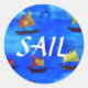 Bateaux aquarelle Bleu Sticker rond, brillant