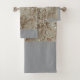 Serviette très douce mais la + petite est vraiment très très petite. À peine + grande qu'un gant de toilette.