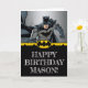 Envoyez des voeux d'anniversaire sur le thème du super-héros avec cette carte d'anniversaire personnalisable Batman ! Avec Batman en action et un texte audacieux inspiré du tableau de bord, cette carte allie design dynamique et touche personnelle. Ajoutez votre propre message pour en faire la meilleure façon de célébrer la journée spéciale de tous les fans de Batman.
