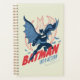 Batman avec cape high-tech et grille bordée Bat Logo qui dit "Batman Into Action".