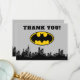 Montrez votre gratitude à la manière des super-héros avec cette carte de remerciement dynamique de Batman sur la ville de Gotham ! Avec la skyline emblématique de la ville de Gotham et le signal Bat lumineux dans le ciel nocturne, cette carte ajoute une touche audacieuse et excitante à votre message. Avec des designs dynamiques et des couleurs vives, c'est le moyen idéal pour remercier vos invités après une célébration inoubliable sur le thème de Batman. Entièrement personnalisable pour rendre votre appréciation encore plus personnelle.