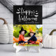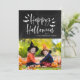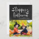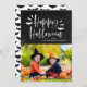 Célébrez Halloween en envoyant à vos amis et à votre famille nos cartes photos de chauves-souris Halloween. Le mignon carte photo d'Halloween présente "Happy Halloween" dans une police de script moderne blanche et lettrée à la main avec chauves-souris volantes contre un arrière - plan de tableau noir foncé. Personnalisez les cartes Halloween en ajoutant votre nom et votre photo préférée. Le revers de la carte comporte un motif de chauve-souris amusant.