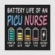 Humorous shift chart showing the battery life of a PICU nurse, also known as a pediatric intensive care nurse, with colorful levels from start to double shift. Ideal for pediatric ICU staff who enjoy relatable workplace humor.