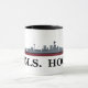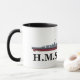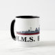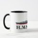 Mug with drawing of the British battlecruiser HMS Hood, sunk by the German battleship Bismarck in the Denmark Strait on May 24, 1941 during World War II.
