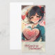 Carte de manga Valentine colorée avec une jolie fille tenant un coeur rouge et encadrée par des détails doux. Le devant montre un enchanteur "Serez-vous ma Saint-Valentin ?" en lettres joueuses. Un geste sincère plein d'amour et de charme.