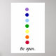 Graphique de Chakra avec l'expression "Be Open". Impression amusante pour pendre dans un studio de yoga ou de massage !