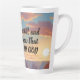 Be Still & Know That I Am God Custom Latte Mug. This is a faith scripture mug, with the verse from the book of Psalms 46:10 with an image of a lady looking out at a restful sunset. Make it your own using your preferred image and text.