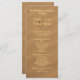 Grand, plage et programme de mariage. Customiser sur les deux côtés du papier long avec du texte jaune clair sur une image de sable brun. Inclure le lieu du mariage, les noms de la fête de mariage et une note de remerciement aux invités.