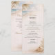 Elegant beach wedding menu template featuring soft ocean waves, palm details, and warm golden accents. Perfect for coastal, tropical, and destination weddings. Designed in a modern 4 × 9.25 format with a matching back design for a beautiful seaside reception setup.
