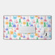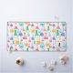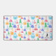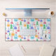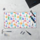 Tapis de bureau avec une motif amusante et colorée. Un scientifique de recherche vibe avec des beakers et des flacons de différentes formes et tailles dans des couleurs vives et joyeuses.