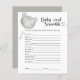 Célébrez avec cette élégante invitation à baby shower à thème pour ours en peluche ! Éléments correspondants disponibles. Réponses : CRAVINGS, PLEIN, PACIFICATEUR, BOUTEILLE, LUMIÈRE NOCTURNE, LULLABY, STROLLER, ÉPIDURAL, BRÛLE, CHAISE HAUTE, SAC DE DIAPER, ÉPONSE