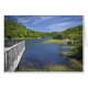 Image photographique de la petite communauté rurale de Bear River, dans la province de la Nouvelle-Écosse, au Canada atlantique, située sur la côte est du Canada. Cette image présente une rivière bleue entourée d'herbe verte des zones humides avec une forêt verte d'arbres dans l'arrière - plan et un ciel bleu vif avec quelques nuages blancs. Au premier plan, un pont blanc s'étend dans l'eau, qui noie les yeux à travers l'image. Cette image donne un sentiment de paix, de tranquillité et de sérénité. Le retour à la nature et à la détente.