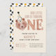 Invitations amis et famille pour célébrer le premier anniversaire de votre petit bébé avec cette invitation Bear-y Cute! Doté d'un ours en peluche d'aquarelle douce portant un casquette de soirée à pois et tenant un ballon d'or avec le numéro "1", ce design allie charme et lucidité. Idéal pour les fêtes d'anniversaire de naissance sur le thème des bois ou des bébés garçons. Personnalisez avec le nom de votre enfant, les détails de l’événement et les informations RSVP pour en faire votre propre !