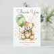 Ours en peluche patienter sauge vert et brun baby shower carte de remerciements, aquarelle mignon ours en peluche avec un arc cravate sauge ballons verts or saupoudrer