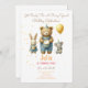 Célébrez une journée spéciale avec notre carte d'invitation enchanteresse fête d'anniversaire, avec un adorable ours avec un tambour, un lapin sucré avec un gâteau, et une souris joyeuse avec un ballon. Parfait pour ajouter une touche de fantaisie et de charme à la célébration d'anniversaire de votre enfant. Faites de la fête d'anniversaire de votre enfant une fête inoubliable avec cette carte d'invitation délicieuse et personnalisable. Commandez maintenant et commencez à planifier la fête parfaite!