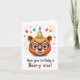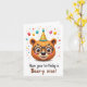 Célébrez l’anniversaire d’un être cher avec cette adorable et vibrante carte d’anniversaire qui présente un joli ours en lunettes et un casquette de fête coloré. Entourée d'une joyeuse douche de confettis et de ballons, cette carte apporte un éclat de joie et de célébration à toute occasion d'anniversaire. Le jeu de mots "Hope your anniversaire is Bear-y nice!" ajoute une touche ludique et chaleureuse, parfaite pour les amis, la famille et les enfants de tous âges.