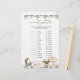 La carte de jeu baby shower animal gestation à thème avec des animaux de l'aquarelle avec des animaux safari illustration et aquarelle verte eucalyptus garland et élégante police manuscrite.