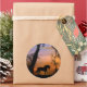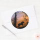 Un joli autocollant à cheval avec un cheval de course, un chêne avec une clôture de campagne. Un autocollant amusant pour les passionnés de équine. Bienvenue au pays des chevaux !