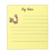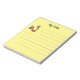 Un bloc-notes jaune clair avec des lignes verticales noires et une illustration montrant un bel oiseau imaginaire sur le côté gauche. L'image a été créée avec un générateur d'art IA.