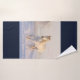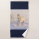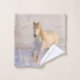 Serviettes avec une photo d'un magnifique cheval blanc. Traverser un champ couvert de neige. Majestueux et beau.