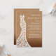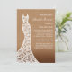 Une robe mariage de dentelle romantique accentue cette invitation à la douche nuptiale sur un arrière - plan burlap à l'ombre illustrée. Cette invitation est affichée sur le papier de base; cependant, je recommande le poids et la texture du papier de lin.