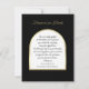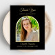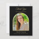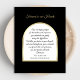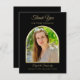 Cette carte de remerciements de sympathie étonnante présente une belle arche avec un cadre doré pour la photo de votre être cher avec un arrière - plan noir. Les mots, "Merci pour votre sympathie apparaissent en haut." Sous votre photo, vous pouvez customiser le design avec le nom de votre proche et les dates. Au contraire, il y a une autre arche où apparaissent vos paroles de remerciements. Au-dessus de l'arc se trouvent les mots, "Pour toujours dans nos coeurs. C'est une belle carte de remerciements moderne de sympathie. Remarque : Ce design fonctionnera mieux si vous avez une photo un peu plus loin. Copyright Sympathy Merci par Kathy Henis