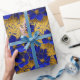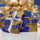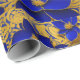 Beau motif floral pour papier d'emballage cadeau en bleu Klein international et images répétitives or.