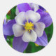 Jolie fleur violette et blanche, est présenté sur cet autocollant rond. Utilisez cet autocollant pour ces mailings spéciaux, la décoration, scrapbooking et plus encore!