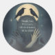 Scellez vos enveloppes, faveurs ou traitez vos sacs avec de la magie au clair de lune à l'aide de ces autocollants de mariage gothique. Dotés d'un motif de cimetière avec une pleine lune, des corbeaux et des mains squelettiques entrelacées, ils ajoutent un charme fou à votre célébration éffrayante. Idéal pour les mariages d'Halloween ou de style gothique.
