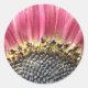 Cette belle feuille d'autocollants ronds présente une photo détaillée d'un joli tournesol rose. La photo a été prise en utilisant la macro photographie et montre les pétales roses vibrants et le détail complexe de cette belle fleur.