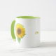Belle tournesol avec feuille en forme de coeur et texte de joie au centre Mug.