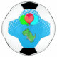 Belle bande dessinée bébé t-rex volant dans le ciel bleu avec des ballons. Boules de football pour bébés animaux personnalisées. Idée cadeau pour les enfants qui aiment les dinosaures.