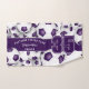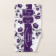 Cette serviette esprit d'équipe pour les joueurs de football présente des boules de football de taille variée avec des couleurs violettes et blanches d'équipe tournées partout sur un arrière - plan blanc et un numéro de maillot proéminent en violet surplombant une bande de couleur violette pleine longueur, sur laquelle vous pouvez également customiser le nom de l'athlète, nom de l'équipe et nom de la mascotte en blanc - par katz_d_zynes