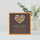 Un coeur de coeur design dans des tons lumineux de turquoise, de citron vert, d'orange et de rose chaud - fait une invitation amusante et joyeuse aux couples wedding showers.VEUILLEZ NOTER : UN POSTAGE SUPPLÉMENTAIRE EST NÉCESSAIRE POUR LES INVITATIONS DES CARRÉS DE COURRIER; VÉRIFIEZ AVEC VOTRE BUREAU DE POSTE POUR VOUS ASSURER QUE VOUS ACHETEZ LA DÉNOMINATION CORRECTE