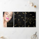 Un assortiment amusant de faux cils en or remplit l'arrière - plan de cette brochure en triple thème de beauté 5x7. Le texte graphique en or Faux indique "Lashes" tandis que votre nom est associé en dessous pour un logo instantané. Créées pour des salons d'extensions pour cils, des maquilleurs, des spécialistes de la beauté et plus encore, ces brochures uniques sont parfaites pour afficher vos tarifs et votre menu de services. Un excellent outil de marketing à distribuer à des clients potentiels afin de présenter rapidement votre entreprise. Veuillez contacter le concepteur pour obtenir de l'aide sur les modifications de composition ou de disposition spéciales. Art et design © 1201AM Design Studio | www.1201am.com