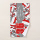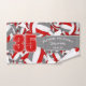 Cette serviette cool pour les joueurs de volley-ball présente des volleyballs rouges, gris et blancs de tailles variées tournés de chaque côté sur un arrière - plan blanc et un numéro de maillot proéminent en rouge surplombant une bande de couleur grise, audacieuse et pleine longueur, sur laquelle vous pouvez également personnaliser le nom de l'athlète, le nom de l'équipe et le nom de la mascotte - par katz_d_zynes