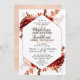 Beauté rustique Floral encadré d'aquarelle Bohème à l'automne ou à l'automne Design avec des fleurs peintes à la main de Boho, plumes, et beaucoup de coloré orange, rouille, rouge, Bourgogne, Marsala, feuilles de pêche et feuillage. Avec des éléments de ligne à main, des polices à main Tourbillonnant, des Parties scintillant Roses en or et des pinceaux en pinceau sur une invitation de mariage Hexagon géométrique! ~ Regardez ma boutique pour voir l'ensemble de la suite mariage pour ce design!