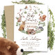 Présentant notre charmante invitation au baby shower, ornée d'une magnifique scène boisée. Ce design enchanteur capte l'essence de la nature, avec d'adorables créatures forestières au milieu d'une végétation luxuriante. Parfait pour célébrer l'arrivée d'un petit, notre invitation donne le ton d'un baby shower fantasque et mémorable. Avec son imagerie captivante et sa typographie élégante, cette invitation vous impressionnera et créera un sentiment d'anticipation pour l'occasion joyeuse.