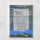 Belle invitation à dîner de répétition mariage faite avec la pièce d'art de Claude Monet intitulée Water Lilies, en tant qu'arrière - plan. Les graphiques d'une zone de texte transparent blanc bordée d'or sont décorés avec des graphiques d'un joli ruban bleu et arc, au fond. Le texte noir est prêt à être personnalisé pour votre événement mariage.