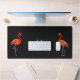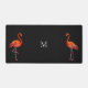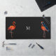 Beaux flamants roses et monogramme sur un Sous-main presque noir.