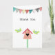 Beaux Oiseaux Whimsiques Et Birdhouse Merci Les Cartes. Une belle façon de dire merci ! Un mélange multicolore au sommet avec des oiseaux verts doux volant vers une maison d'oiseaux avec une entrée en forme de coeur. Design simple et propre, idéal pour les amateurs de Boho et de Shabby Chic ! Facilement personnalisable pour ajouter vos propres détails. Produits correspondants également disponibles dans notre magasin d'Invitations mignons.